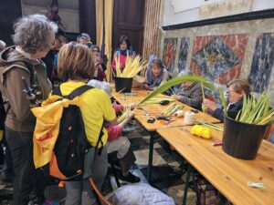 Dopo la rituale foto di gruppo scendiamo a Sasso dove ci aspetta un buon pranzo presso il locale ristorante su una bellissima terrazza panoramica. Sazi e soddisfatti riprendiamo la discesa sul crinale per poi deviare in basso verso il sentiero del Beodo che ripercorriamo fino a Bordighera, dove, vicino alla parrocchiale, vi è la chiesetta di S. Bartolomeo utilizzata nei pomeriggi da alcune signore che intrecciano con abilità le foglie di palme facendo delle belle decorazioni per la prossima Domenica delle Palme.